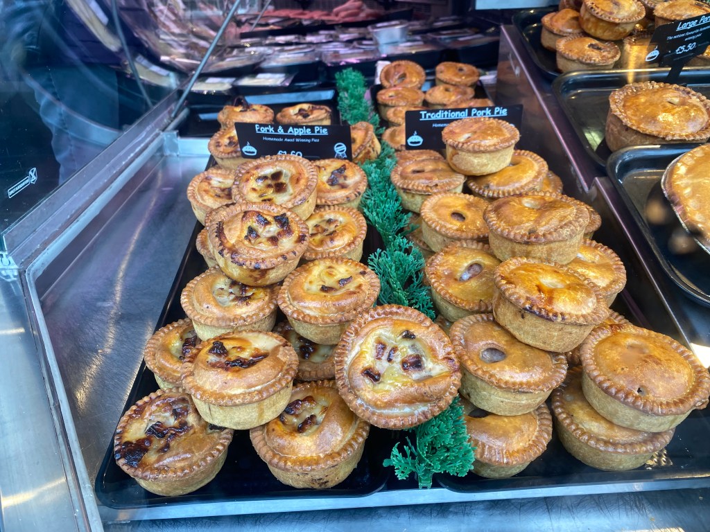 Across the road was Kendall’s Farm Butchers, a local butcher serving up traditional English foods. I went in and ordered a Pork Pie. This is one of those dishes that you either love or hate. Tightly packed ground pork surrounded by a layer of jelly sits in a small pie. I sway more towards the dislike, they taste pretty weird. I was excited to see Emily’s reaction to it. After pulling some funny faces, she surprisingly liked it. “It’s weird, but good”.