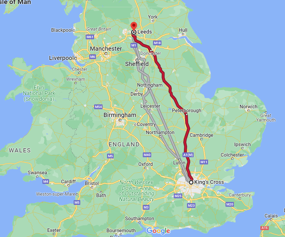 Luckily for us, our train was filled with a bunch of Leeds United fans who were traveling up to Leeds to watch them play against Norwich. It was packed with fans sitting and standing. I made sure not to reveal my Man Utd phone screen to prevent us from being stabbed.