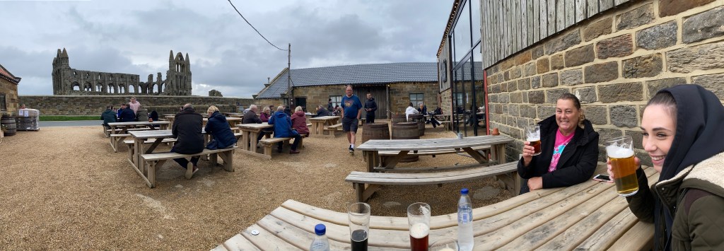 A short walk on also, totally coincidentally, lay a brewery, Whitby Brewery. We ordered our brews and sat outside with views of the destroyed Whitby Abbey.