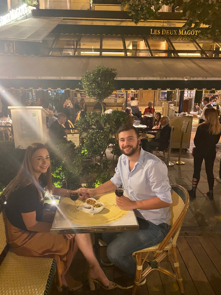 Our first evening in Paris was filled with plenty of those magical moments that you remember for the rest of your life. We had a reservation for one of the most famous café’s in all of Paris: Les Deux Magots. This café became famous during the 1920’s as it became a hotspot for artists. Their patrons most famously included Ernest Hemingway, Pablo Picasso, Julia Child, and James Joyce. So, as you could guess, we were quite excited.