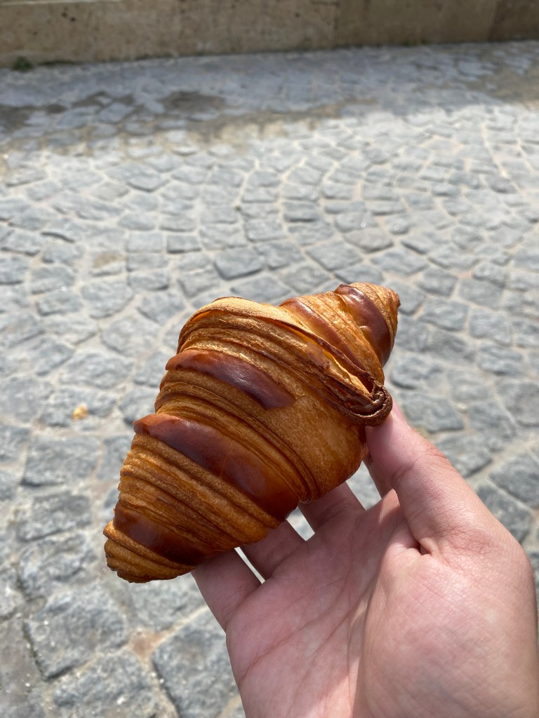 As soon as we got out the Uber, that smell of fresh pastry filled the air again. We stepped in line and noticed something concerning, there were no croissants left. We began to panic. We cannot leave Paris without consuming a croissant! As the person in front of us paid, we began to accept the fact that there would be no award wining croissants for us. But, as if by divine intervention, a fresh batch of beautiful buttery croissants were brought out. We got 1 each and also a baguette because, why not?