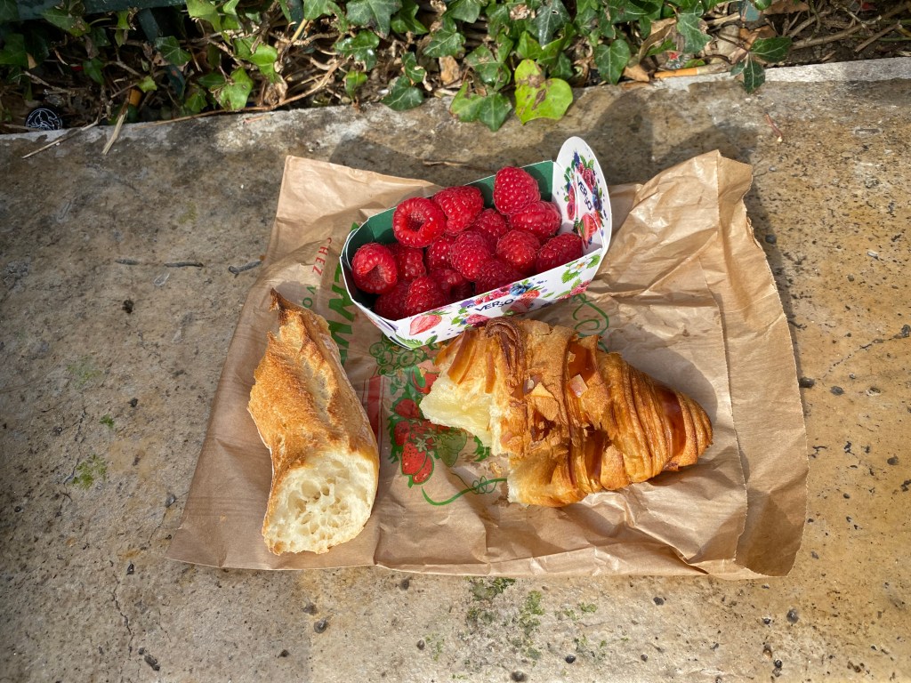 I didn’t think it was possible for a croissant to taste so good. They were perfectly toasted, light, but still buttery, and the lamination of the layers were unlike any croissant I had consumed before. Maybe with the thoughts of the macaron from the night before we thought raspberries would be the perfect pairing. We weren’t wrong. Something about fresh fruit and a delicious pastry just hits hard. It would be worth flying to Paris just to experience.
