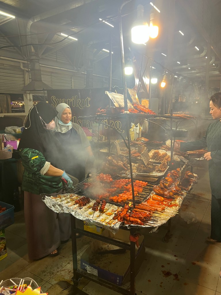 A quick 15 minute drive and we were pulling up to the Gadong Night Market. It was about 8pm, and popping off. Cars surrounded the outside as they dropped people off. Stepping out of the shuttle, the smell of grilled meats immediately hit our nostrils. The sounds of hustle and bustle radiated through the metal structure of the market. Markets like these are our favorite places to walk around, people watch, and eat some good food. Markets don’t exist for tourists. It’s not a park or monument that is there to sell tickets. This is where you can go to see life as it is for those that live there.