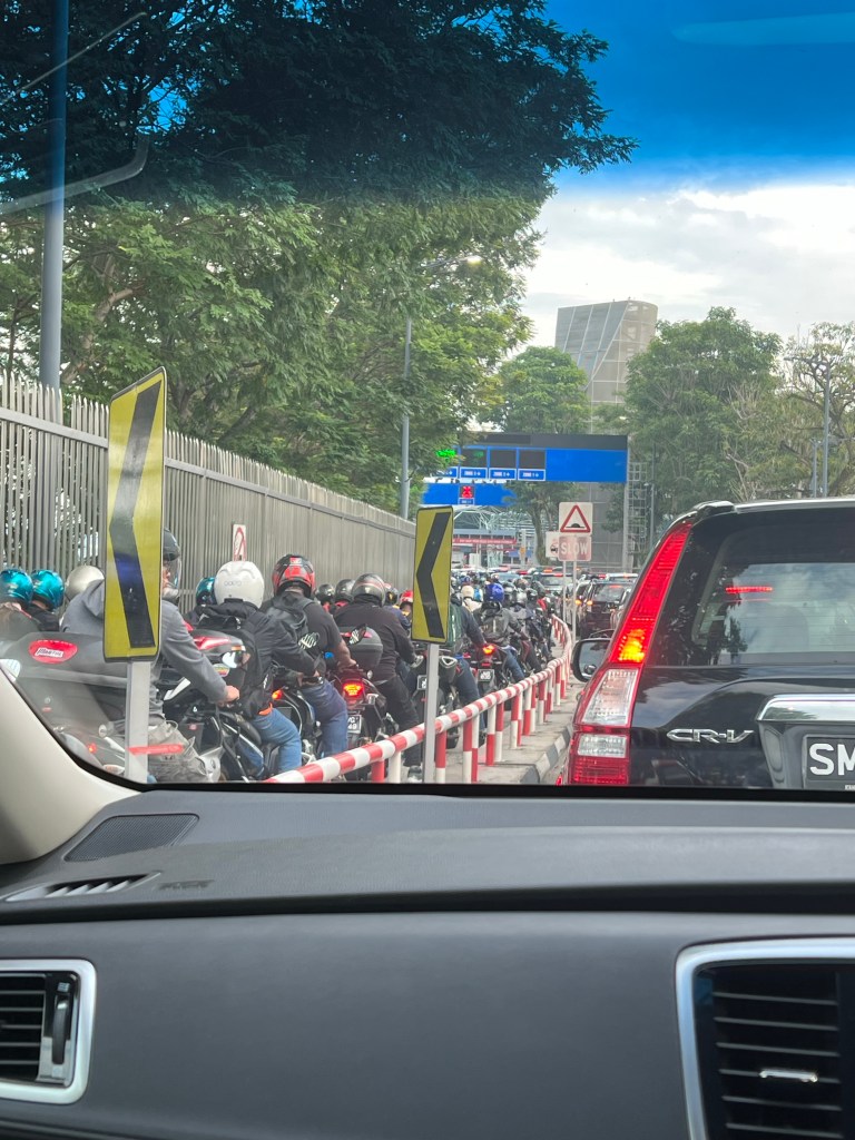 Eventually we got to Woodlands Border Checkpoint, the main crossing point into Malaysia. I have never seen so many bikes in my life. They absolutely packed into the small lane that was provided to them, jostling with each other to gain a couple of feet ground. The blaring of horns was constant. Han swore at a car that was trying to get in front of her. “You never give an inch, or they will take your spot”. It took about 30 minutes of bumper to bumper traffic until we reached the actual border. We passed our passports to Han as she handed them to the agent. She rolled down her windows and we smiled and waved at him and he did the same to us. “They are much friendlier on this side than the Malaysian side”. She wasn’t joking, on the Malaysian side we were met with stern faces and silence. But here we were, we’d made it. Country number 15. Malaysia.