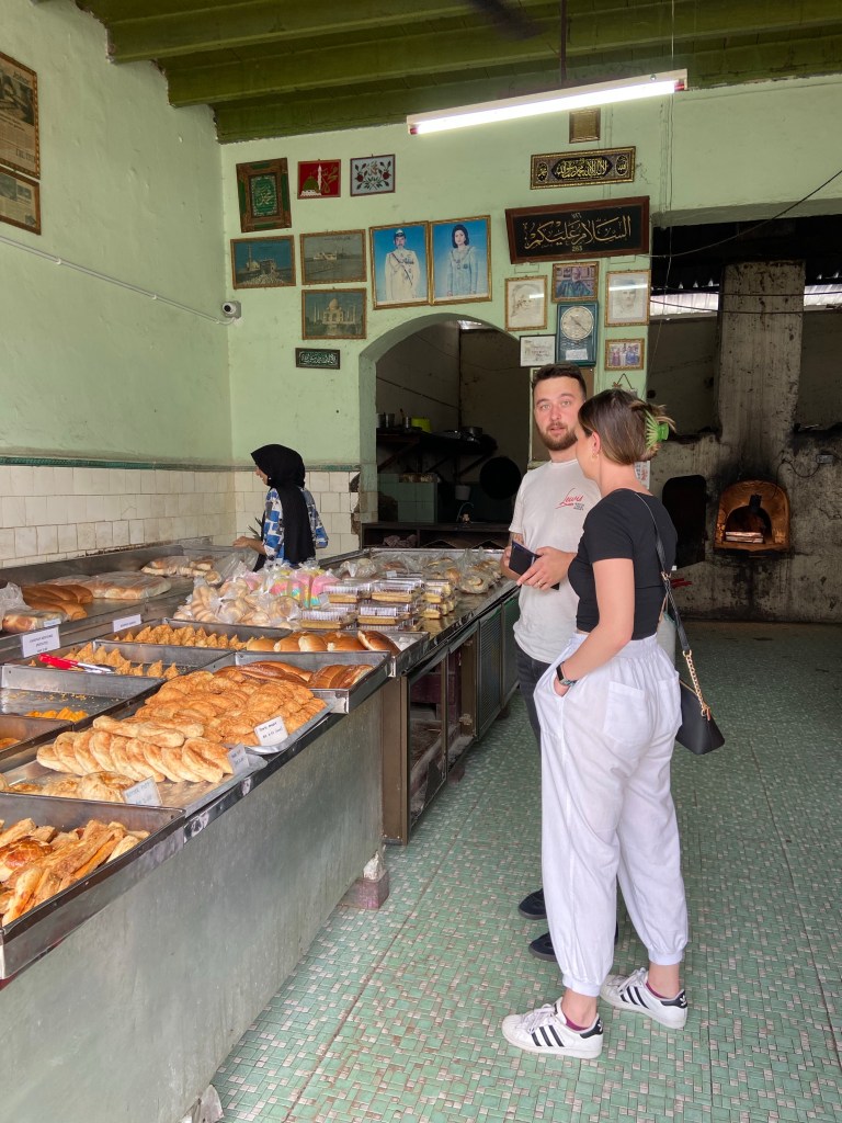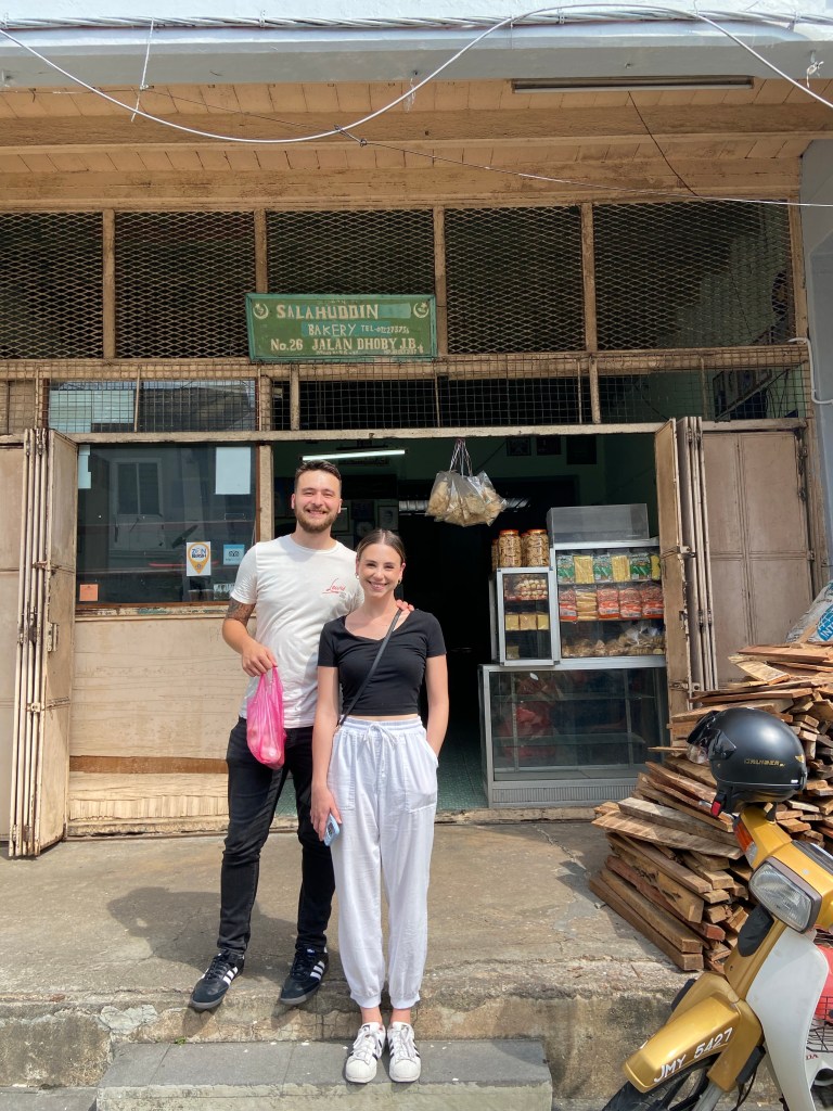 It was here that we stopped by Salahuddin Bakery, which definitely became the coolest bakery we have ever been to. Tucked in between the some of the more modern buildings, this bakery has an inconspicuous entrance. Just a simple green wooden sign sits above it’s opening, “Salahuddin Bakery No.26 Jalan Dhoby JB”.