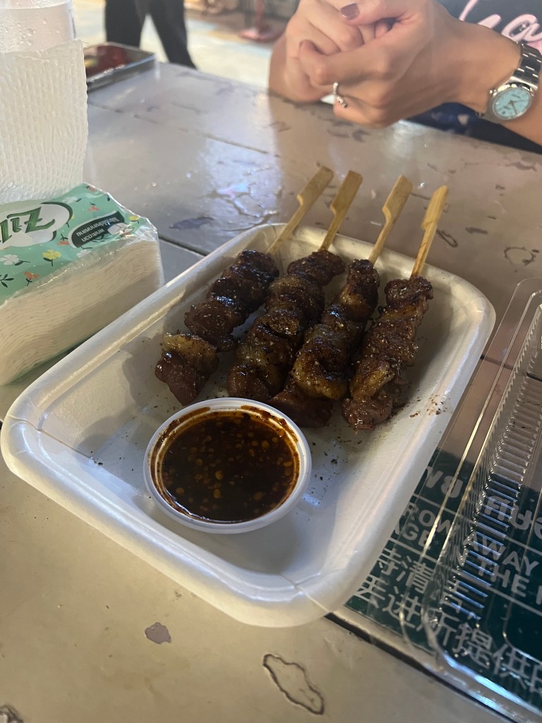 I also ate Durian for the first time, dangerously without gloves. I told Mark that it was on my bucket list and while walking back to the car he flagged down a guy selling them on the street and got me a bite. It doesn’t taste nearly as bad as it smells. I wouldn’t just eat it casually as a snack though.