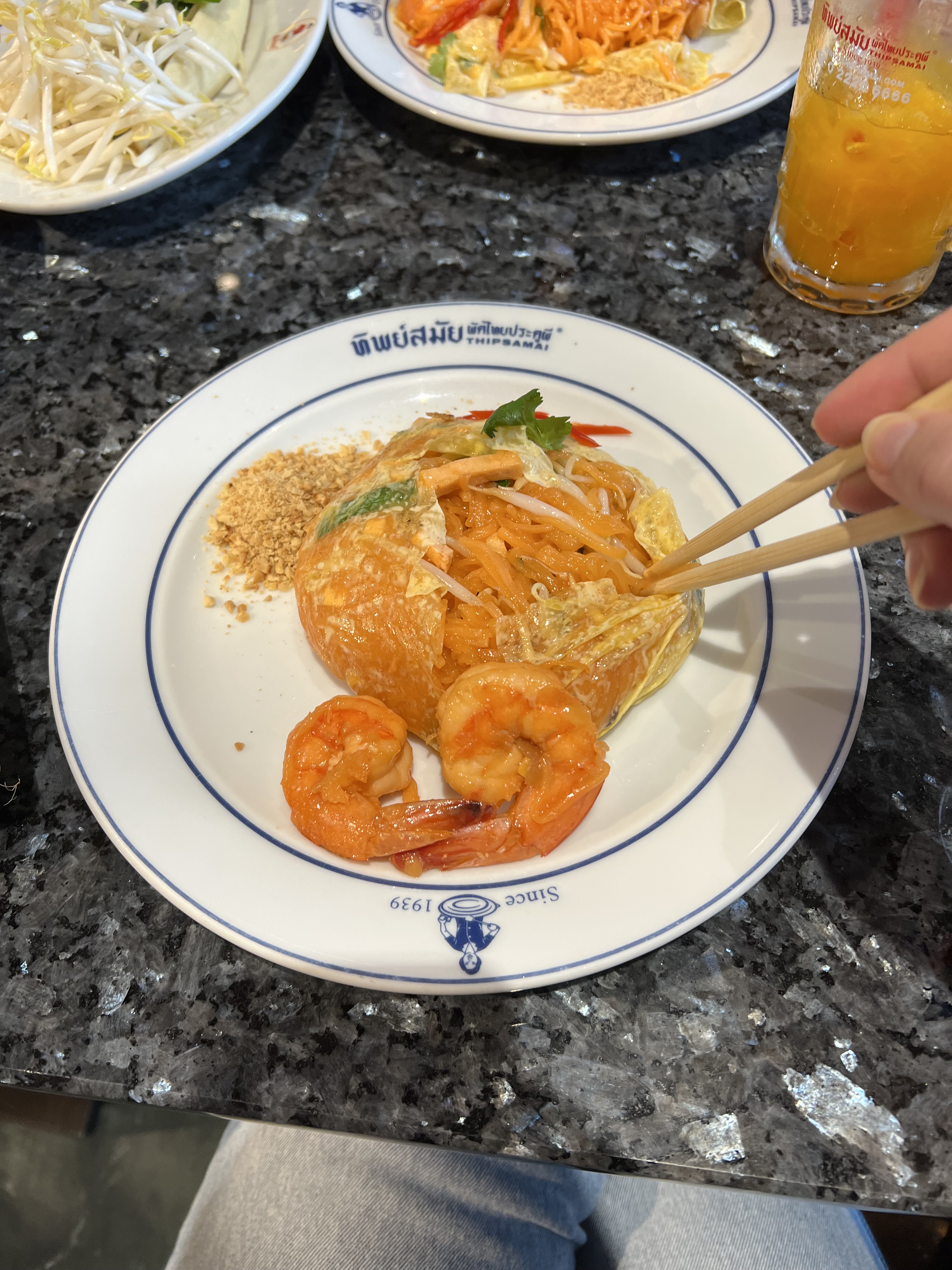 We waited in a line which had just started to form. It wasn’t long until we were at the front and got our table. In a corner I noticed a fridge filled with Orange Juice, and pointed it out to Mark. In addition to their Pad Thai, Thipsamai is also famous for it’s Orange Juice, which we quickly ordered upon learning. It almost didn’t look real with how orange it was. I felt like I was squeezing a freshly picked Orange into my mouth. It was so refreshing.