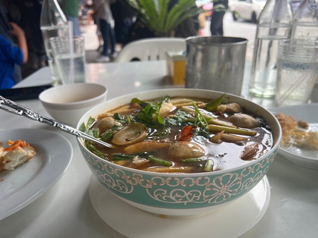 We went looking for another Michelin restaurant and found Guay Jub Ouan Pochana, who had been awarded a Bib Gourmand. We got the Guay Jub Nam Sai, a rolled rice soup, which is what they were famous for. It tasted pretty mid. The pork belly was crispy and great but everything else tasted like bath water.