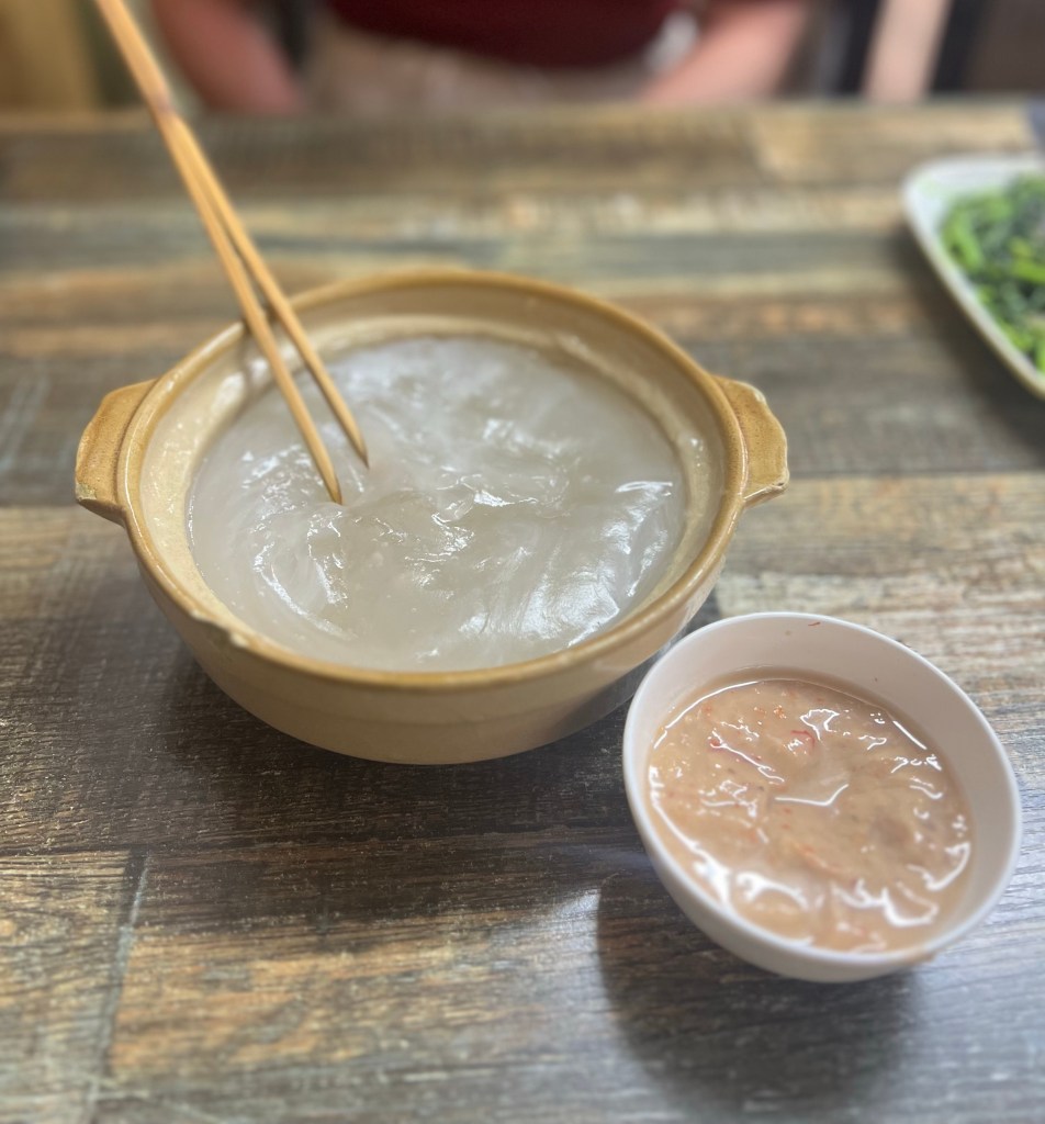 Oh boy, this was a fun one. Most people haven’t heard of Brunei, let alone their National Dish, Ambuyat. We pulled up to Nadi Utama Restaurant to try this strange and unique meal. The first thing we were told, “don’t chew it, just swallow.’” Apparently if you chew, the texture becomes glue like and you can actually choke on it. To eat, you stick in the special chopsticks (Chanda’s), twirl them around until you have a small amount, stick it into your mouth, and swallow immediately. There’s no other way to describe the taste other than flavorless, warm, jelly. If anything, it’s definitely the most unique thing we’ve ever eaten.