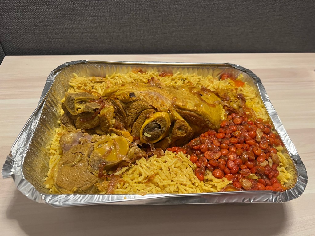 Rice and meat, no way to go wrong with those two ingredients. We arrived at our hotel in Doha at midnight after a long day of travelling. As soon as we arrived, we ordered Mutton Machboos from Majboos Al Walaida in Doha. We were given a heavy container filled to the brim with rice and chickpeas with two massive hunks of mutton in the middle. Each grain of yellow rice was packed flavor. The mutton was so tender it could be cut with a plastic spoon. Very, very good.