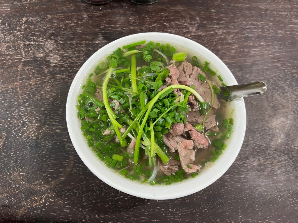 Walk down the streets of Hanoi at any time in the day and you’ll see people sat on tiny stools eating up Pho. During our week in the old town, we ate Pho almost every day and had all different kinds: Chicken Pho, Duck Pho, Meatball Pho. However, our favorite was Beef Pho at Phở Gia Truyền. On the busy Vietnamese streets, as motorcycles whizzed by, we walked up to a tiny hole in the wall, with a couple of tables and tiny plastic chairs. A man at the counter took our order, not making eye contact as he continued to slam his cleaver through a hunk of raw beef. A couple minutes later our Pho arrived. A big bowl of broth filled with cilantro, basil, green onion, beef, and noodles. We discovered more with each spoonful. The herbs add so much freshness. The broth brings warmth and depth. The beef is tender and meaty. The noodles chewy and soft. Amazing dish and experience.