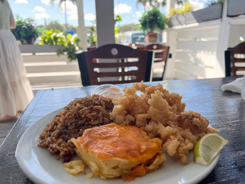 Crack Conch with Peas and Rice at Twin Brothers in Nassau.